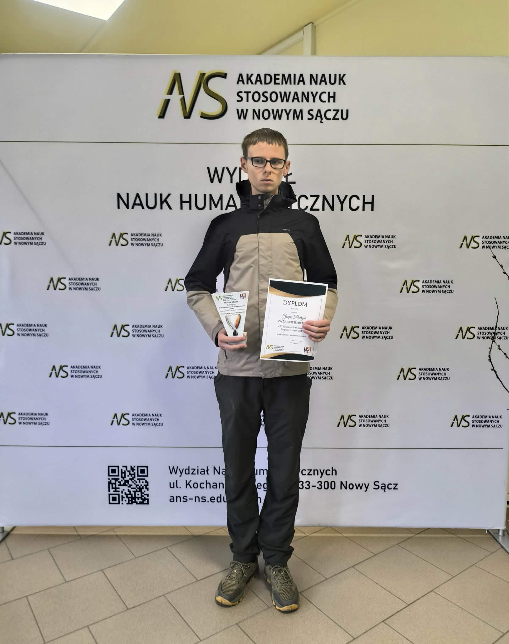 Nasz uczeń, Patryk Grapa (kl. IIA LO), po raz kolejny został Laureatem Wojewódzkiego Konkursu Lingwistycznego DUET organizowanego przez Akademię Nauk Stosowanych w Nowym Sączu. Wykazując się niezwykłymi umiejętnościami lingwistycznymi w zakresie dwóch języków obcych – języka angielskiego oraz języka niemieckiego, zakwalifikował się do II etapu, gdzie w grupie 140 uczestników z 41 szkół ponadpodstawowych rywalizował o miejsce w etapie ustnym. Dzięki swoim umiejętnościom, systematycznej pracy, ciekawości świata oraz odwadze w podejmowaniu intelektualnych wyzwań awansował do finału ostatecznie zajmując II miejsce.